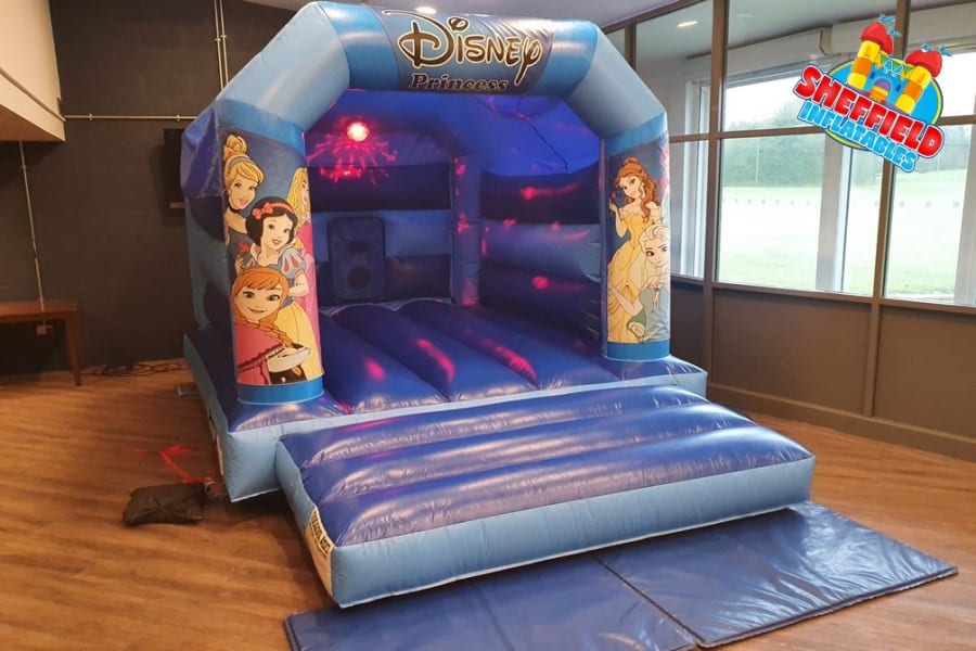 All our princess bouncy castles are available in Sheffield, Chesterfield and Rotherham, many areas are free delivery. The castle size is 11ft x 15ft but you will need 13ft x 20ft of space.