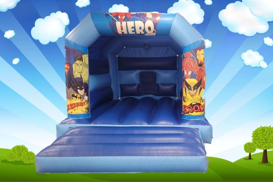 Hire our hero bouncy castles in Sheffield, in Chesterfield and in Rotherham. We also have ball pools and games you can add on to your booking.