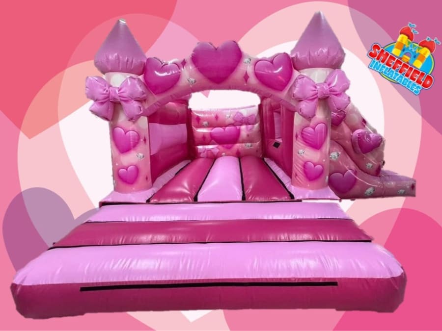 Book our gorgeous 3D Heart Bouncy Castle Combo for a memorable girls’ birthday party. Perfect for halls and community centres due to it's low hight design. Max age 12. Strictly no adults. Ideal for celebrations, parties and events in Sheffield and Chesterfield.