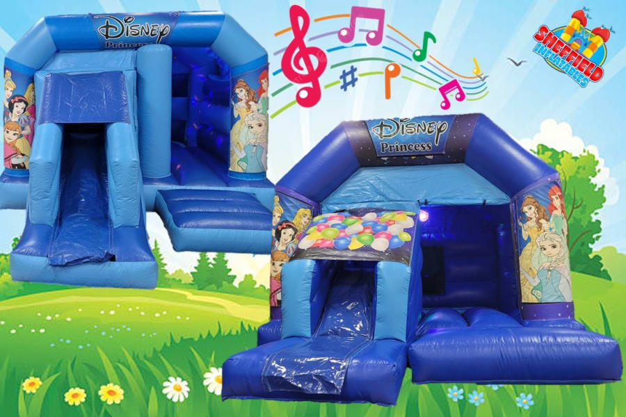 Space needed is 14ft x 22ft to account for the blower at the back and mats at the front, so make sure you have enough space and it is all on a grassed surface (not soil or mud). For advice or help booking this princess disco bouncy castle in Sheffield, Chesterfield or Rotherham, just get in touch below.