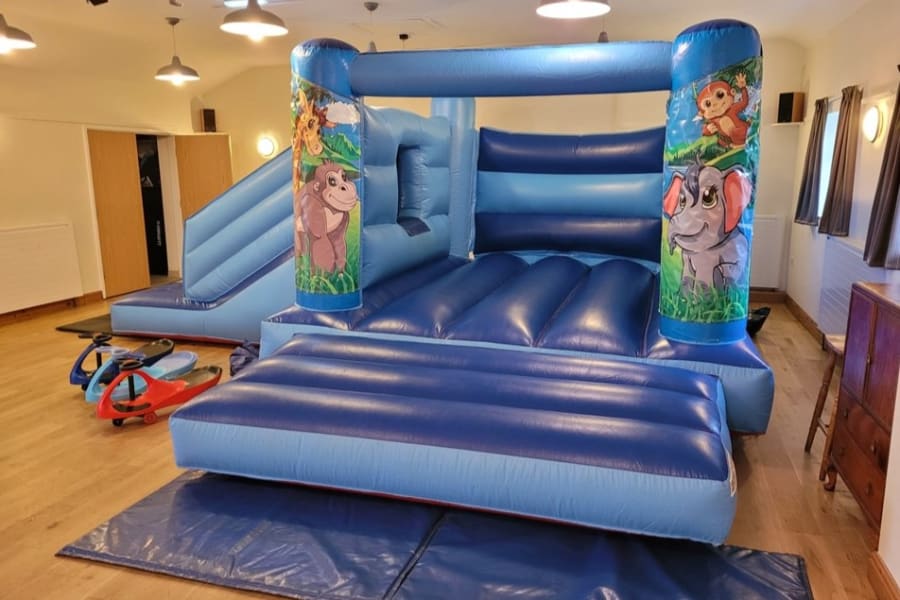 For outside parties we recommend you hire the roofed jungle bouncy castle combo in case of a rain.