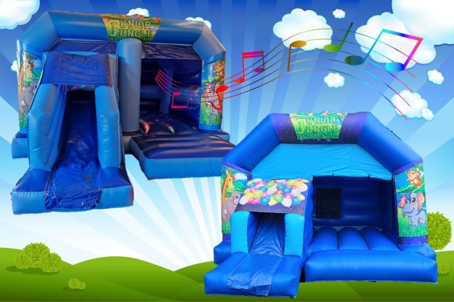 Our Large Jungle Disco Bouncy Castle comes equipped with a disco ball and a high-quality music system. The upgraded 3w disco ball creates a dazzling light show, while the powerful 30-watt music system ensures a fun and lively ambiance. Simply connect your phone or tablet via Bluetooth and let the music play!