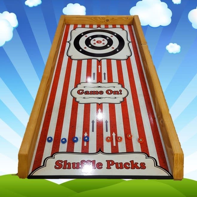 Our party games hire Shuffle Pucks Game in Sheffield and Chesterfield brings the thrill of competition right to your doorstep. Whether you're hosting a birthday party, corporate event, or a casual get-together, this game is sure to be a hit among your guests. Its compact design makes it easy to transport and set up, ensuring fun is always at hand!