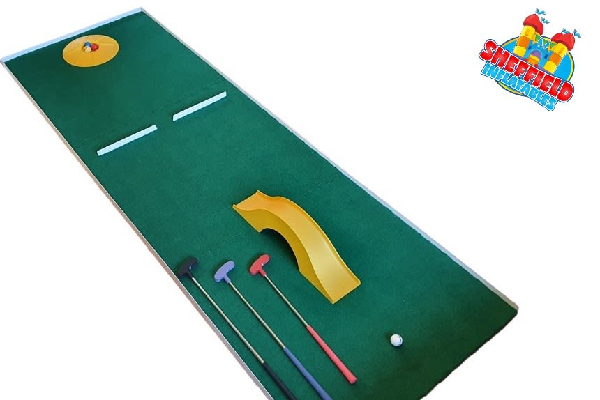 It features an up and over bridge, 2 barriers and the putting hole. With just the right touch and aim, it's possible to get your ball up and over the bridge, squeeze through the 2 barriers and roll up into the hole. The final putting hole has a slight gradient so it's not as easy as it seems.