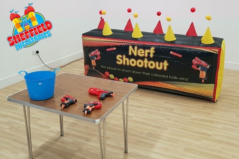 Our shooting game is a fabulous 2 player game for all ages. The objective is to either shoot your coloured balls down the quickest or shoot as many as you can before your opponent. We supply you with 1 blasters (2 if we have availability) and plenty of darts to keep them entertained for hours.