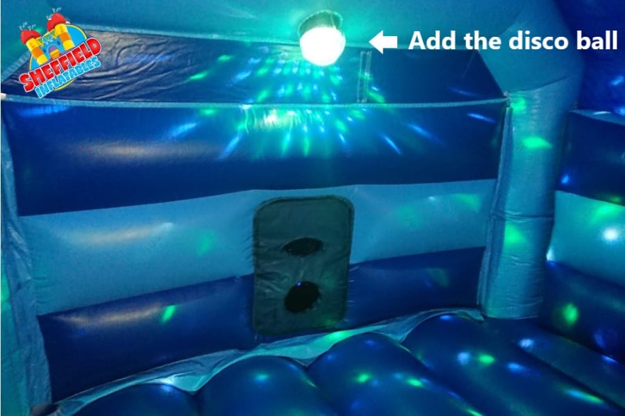 The majority of our bouncy castle can have a disco ball or a music system attached to the inside of the inflatable, making your party really stand out from the rest. The ball is placed in the back wall of the castle, inside a clear pvc pouch.