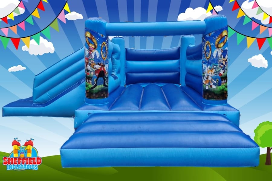Looking for reliable Bouncy castle hire in Sheffield or Bouncy castle hire in Chesterfield? 🎉 The Sonic Bouncy Castle Combo (Low Height) delivers big fun in small spaces. This open-top, no-roof inflatable is perfect for low-ceiling halls, community centres and indoor birthday parties. Fast to set up and safe for younger children, it combines a roomy bounce area with a high slide and slip sheet for extra excitement. 🏰🛝