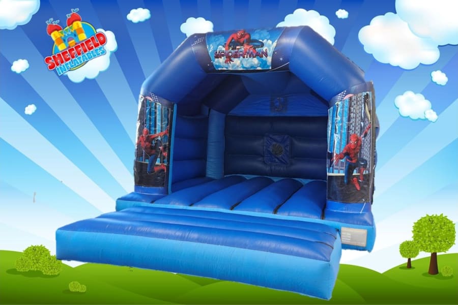 Perfect for Spiderman themed birthday parties. Hire the Spiderman bouncy castle in Sheffield or Chesterfield for your garden or inside your local venue. Affordable, high-quality and guaranteed bouncy — starting from only £85. Friendly service. Clean equipment every time.