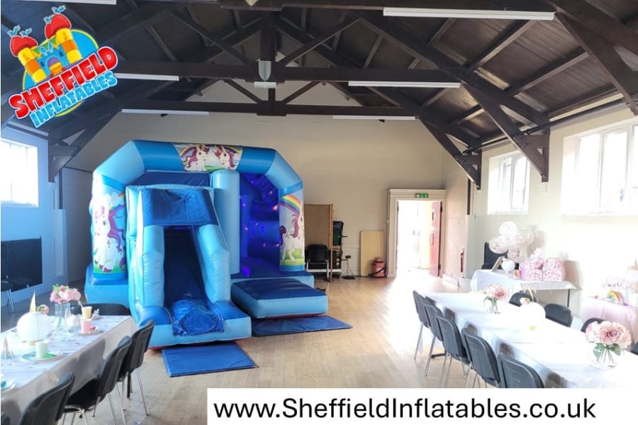A very long and wide church hall, ideal for obstacle courses or pirate ship with plenty room for tables and chairs. It features its own kitchen, toilets and on-street parking.